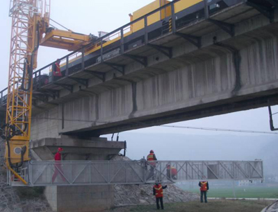 桥梁检测车广泛适用于大中型桥梁的病害维修和预防性检查作业,如对大桥下面各结构进行全面的检查、维修与维护(油漆、喷砂、安装、拆卸),包括对大桥主梁梁底裂纹检测和全桥支座检查养护,也可以安装和维护桥下管道和电缆。