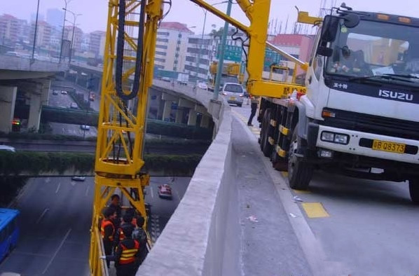 桥梁检测车广泛适用于大中型桥梁的病害维修和预防性检查作业,如对大桥下面各结构进行全面的检查、维修与维护(油漆、喷砂、安装、拆卸),包括对大桥主梁梁底裂纹检测和全桥支座检查养护,也可以安装和维护桥下管道和电缆。