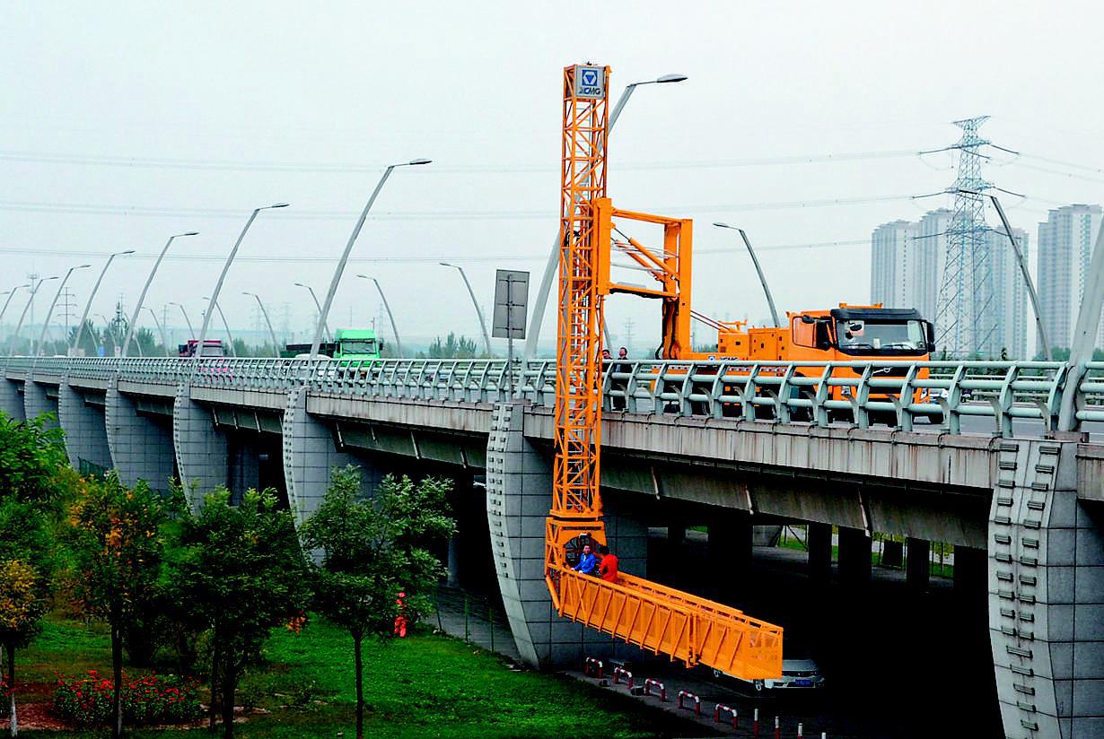 桥梁检测车广泛适用于大中型桥梁的病害维修和预防性检查作业,如对大桥下面各结构进行全面的检查、维修与维护(油漆、喷砂、安装、拆卸),包括对大桥主梁梁底裂纹检测和全桥支座检查养护,也可以安装和维护桥下管道和电缆。